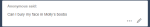 hyrawyvern Uncategorized July 18, 2018December 4, 2018 1 Minute slightlysinian: Go for it anon Share this: Click to share on X (Opens in new window) X Click to share on Facebook (Opens in new window) Facebook Like Loading... Related Published by hyrawyvern View all posts by hyrawyvern Published July 18, 2018December 4, 2018