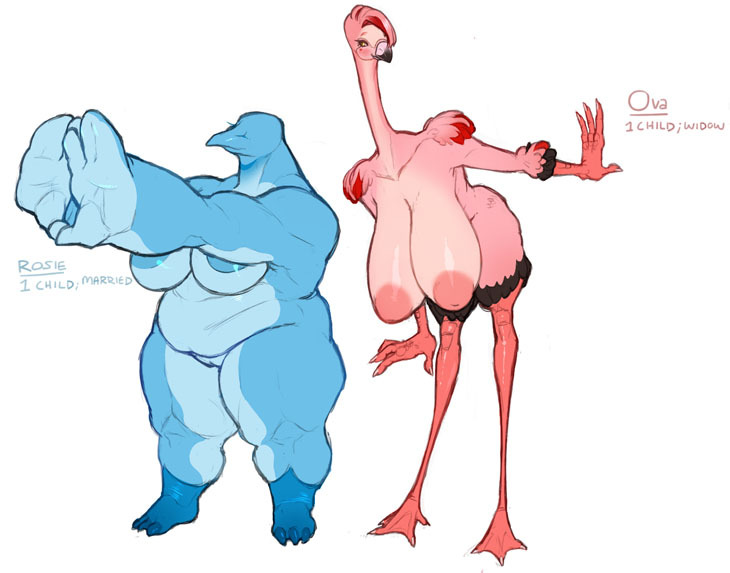 On the right, Ova: a widower and mother of a hatchling; business partner of their development company was also her spouse.